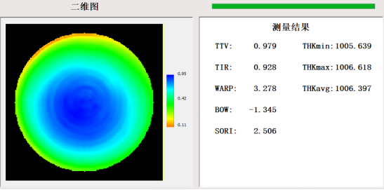 本机采用白光共焦传感器扫描法进行表面形貌测量,经过计算得到Wafer几何尺寸特征值。